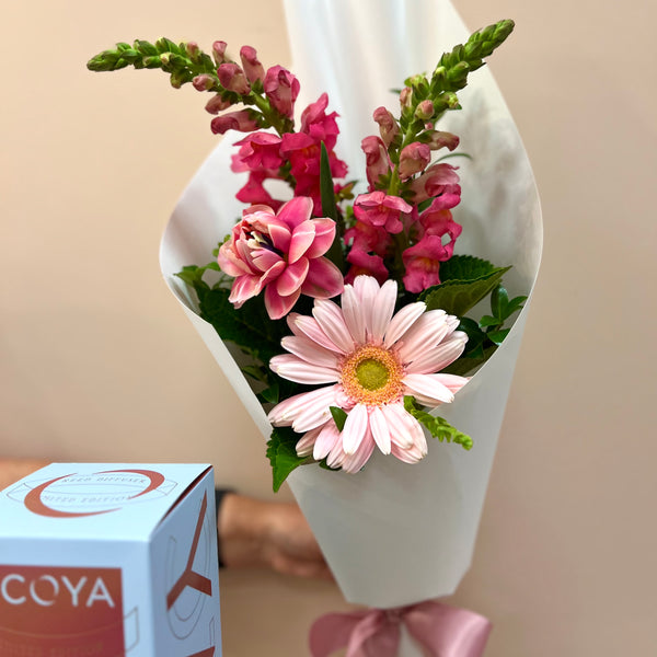 A beautiful little pairing designed to delight the senses. This gift set features a vibrant mini posy in shades of hot pink and soft pink, paired with a luxurious 200ml...