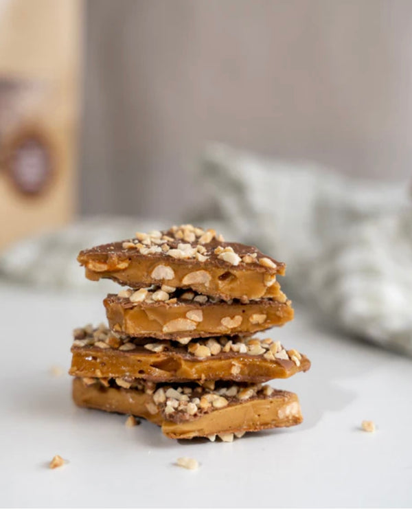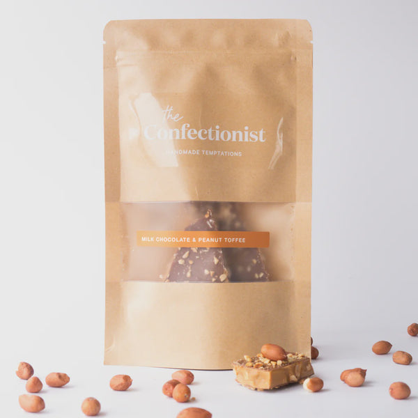 Think our classic silky-smooth toffee, with crunchy, roasted peanuts scattered throughout. Coated in creamy milk chocolate and topped with crushed peanut pieces.