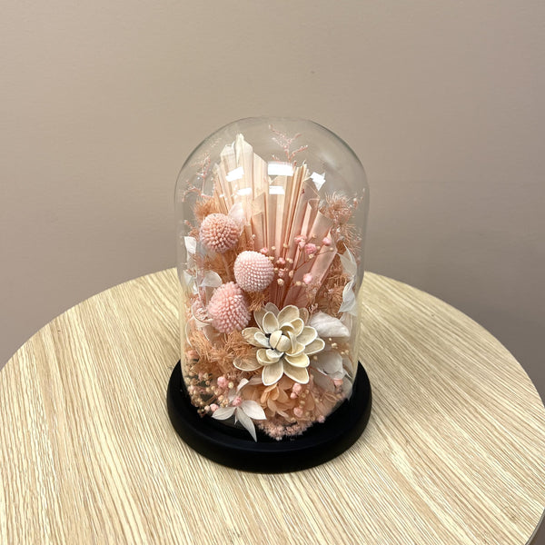 A timeless keepsake of natural beauty — our Dried Flower Dome is a stunning arrangement of dried and preserved blooms, delicately encased in a clear glass dome. Each piece is...